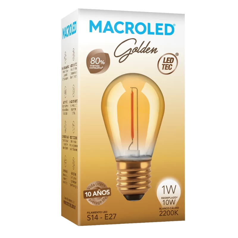 LAMPARA GOLDEN LED 1W S14 E27 CALIDA