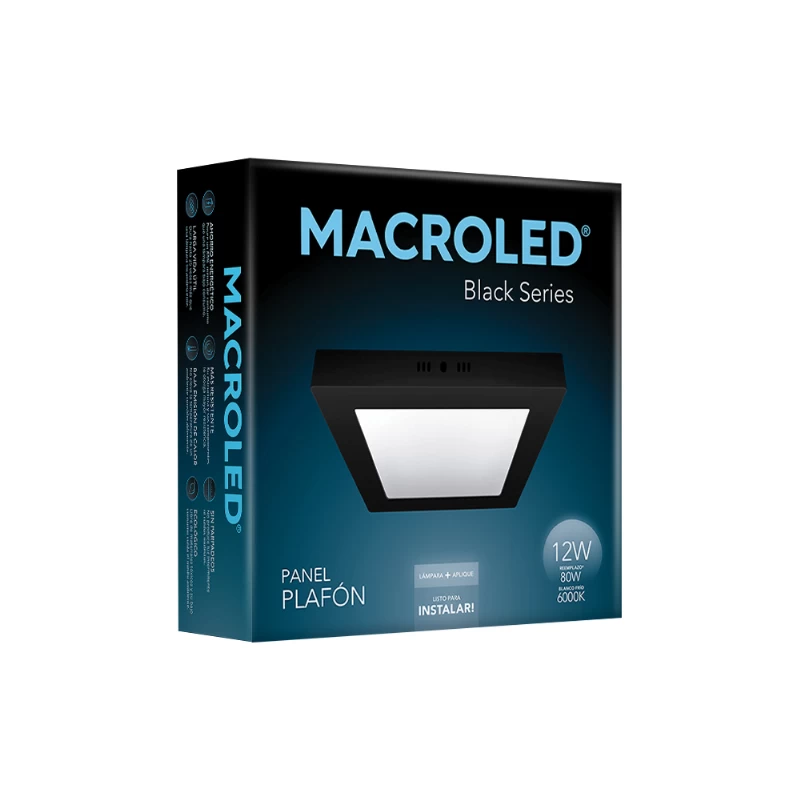 PANEL CUADRADO 12W NEGRO LUZ DIA
