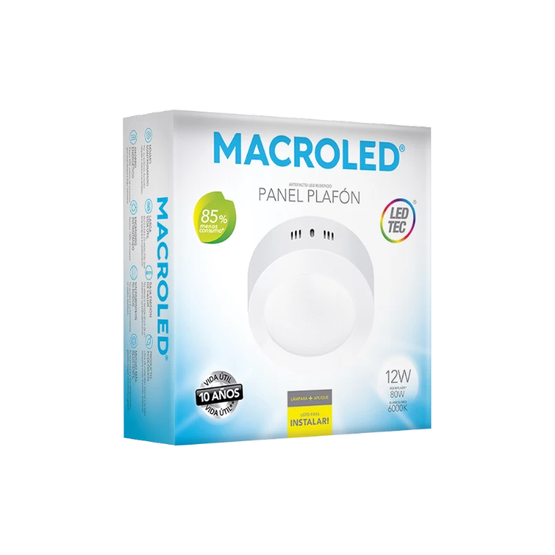 PANEL SUPERFICIAL REDONDO LED 12W LUZ FRIA
